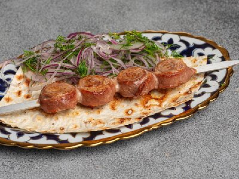 Сочный, пропитанный специями рулет из нежной говядины и курдюка с пикантным красным луком — идеальный выбор для ценителей блюд на огне