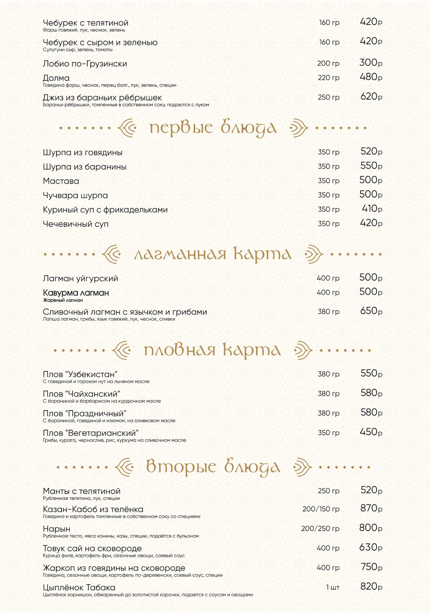 Первые, вторые блюда. Лагманная и пловная карта